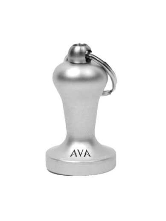 Silver key holder in the shape of coffee tamper, with AVA logo